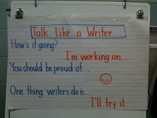 I’ve come to believe it is important to teach children why writers talk about their writing, as well as the way the conversation usually unfolds. This kind of teaching lifts the level of a conference, which in turn lifts the level of our instruction. Often the conversation I have about my writing with my crit partner follows this same structure. It’s how we grow as writers.