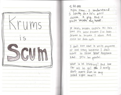 It was painful, but I did it. For a month I’ve had a teenage guy talking to me, telling me his side of things. At one point, this showed up in my notebook (it’s from Sophia) —