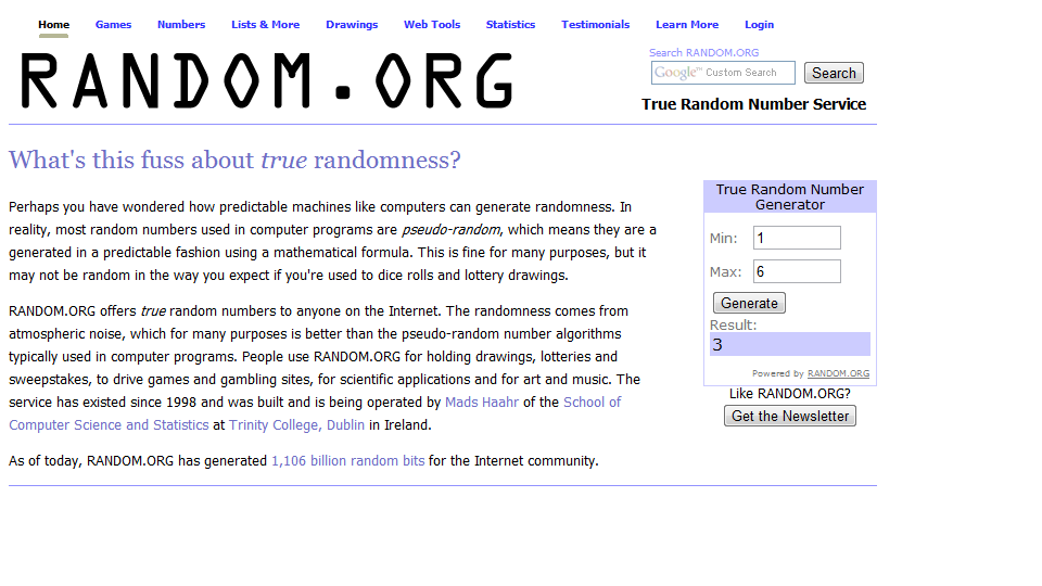 The Random Number Generator selected…