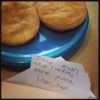 Who isn’t a sucker for handwritten notes? This is why I find space in the middle of the week to bake cookies. This week I made a quadruple batch of snickerdoodles. They were gone within 48 hours. Stephanie said, “I thought you made extras, where are the cookies?”