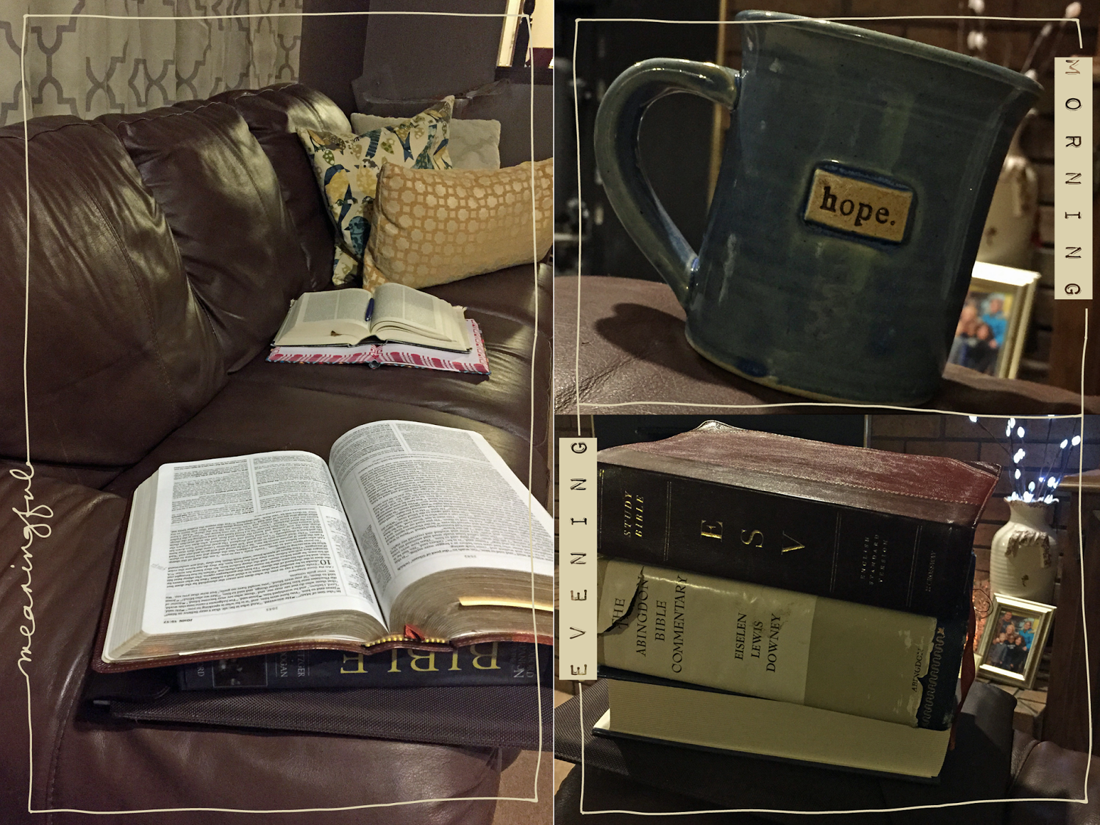 I liked the picture you shared. The photo on the left makes me wonder who the second person is reading the Bible with you – wondering if it is your husband or one of your kids (or whole family). Thank you for that glimpse into an important part of your life.