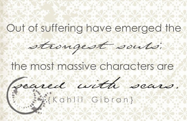 Those who are living get scarred. Scars are proof of overcoming. Scars are signs of vitality. Scars are evidence of strength. This isn’t such a bad thing.